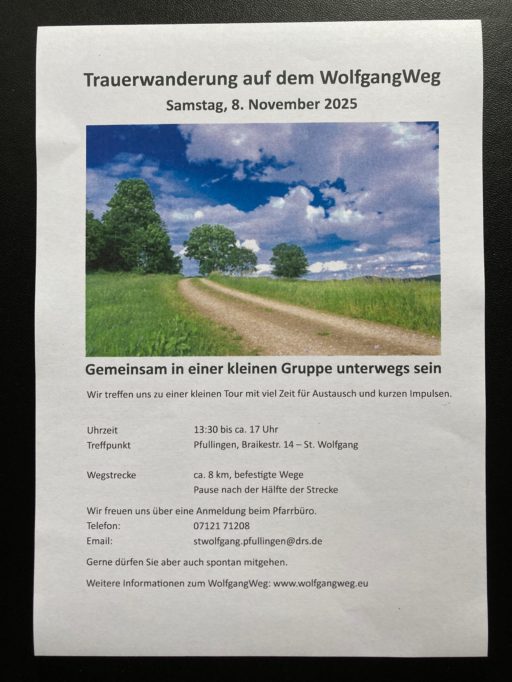 Vortrag zum WolfgangWeg am 19.Oktober in Eningen