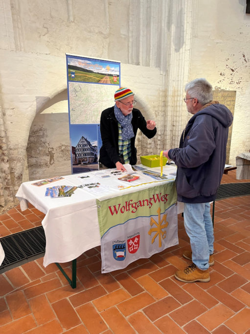 Pilgerführer (12 €), Wolfgangsmedaille (5€) und Pilgerpass (5 €) finden Sie an unserer Wolfgangecke in der Kirche St.Wolfgang an der Rückseite des Kirchenraums. Bitte das Zahlen nicht vergessen!