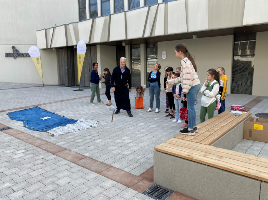 April: Nachmittag mit den Erstkommunionkindern – Hacklwurf auf dem Kirchplatz