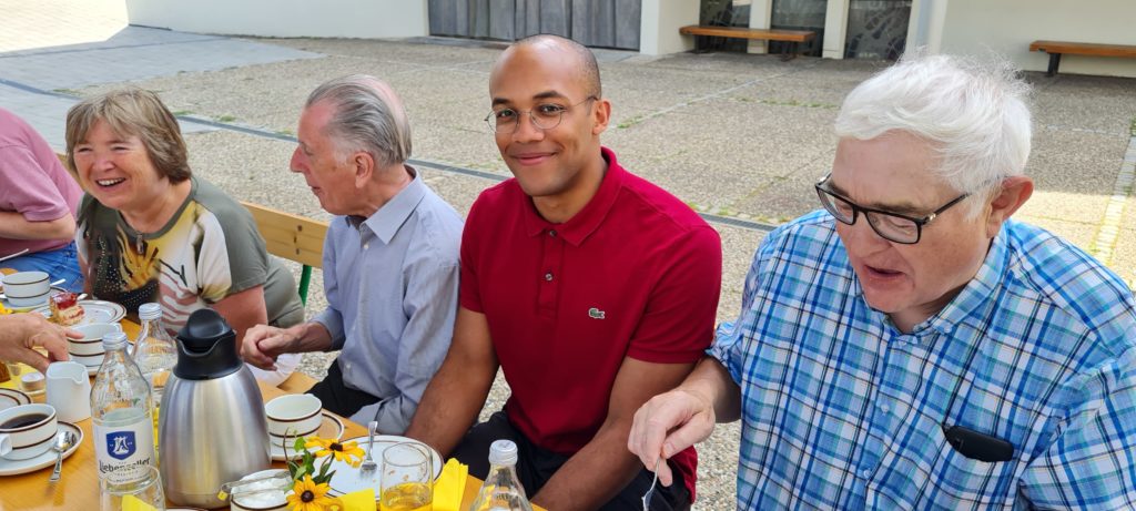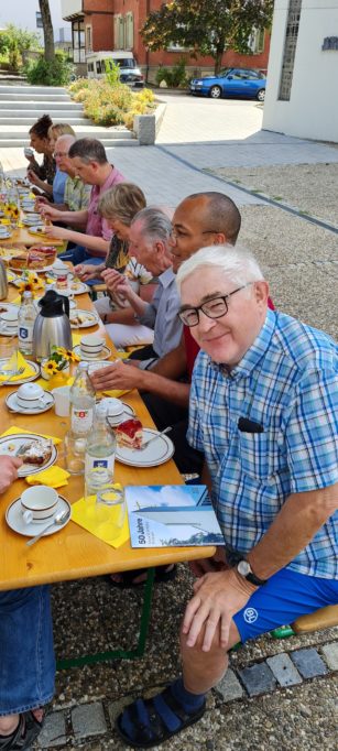 Bei der Ankunft der 9 Benediktiner aus dem Kloster Einsiedeln, wo der hl. Wolfgang von Pfullingen 965 als Mönch eintrat und 968 zum Priester geweiht wurdeKirchenführung in St. WolfgangEin Kandidat (rotes Hemd) – der Jüngste in der 41 Mitglieder zählenden benediktinischen Gemeinschaft, seit drei Wochen erst im Kloster; links: Stv. Gewählte KGR-Vorsitzende Ursula Halter, Teilnehmerin der Wolfgang-Konferenz Mitte April 2023 in St. Wolfgang am Wolfgangsee und Mitbegründerin des neuen WolfgangWeg als Pilgerweg von Pfullingen nach Regensburg (Eröffnung und Einweihung vom 03.-06. Oktober 2024)In geselliger Runde unter strahlendem Himmel bei Kaffee und Kuchen auf dem Kirchplatz St. WolfgangMitte: Stellvertretender Bürgermeister Martin Fink als Vertreter der Stadt Pfullingen und GeschichtsprofiRechts: Michael Halter, Teilnehmer der Wolfgangkonferenz Mitte April 2023 (Österreich) und Mitbegründer des neuen WolfgangWeg von Pfullingen nach RegensburgAbt Urban Federer (54) – seit 10 Jahren Vorsteher des Konvents und Fahrer des KleinbussesDekan Hermann Friedl, Teilnehmer der Wolfgangskonferenz Mitte April 2023 (Österreich), bei der Übergabe eines kleinen HeimatpräsentsPater Lukas, der Kirchenmusiker, der aus unserer Pfullinger Wiedenmann-Orgel registermäßig alles herausholteBei der Abfahrt wieder Richtung Schweiz