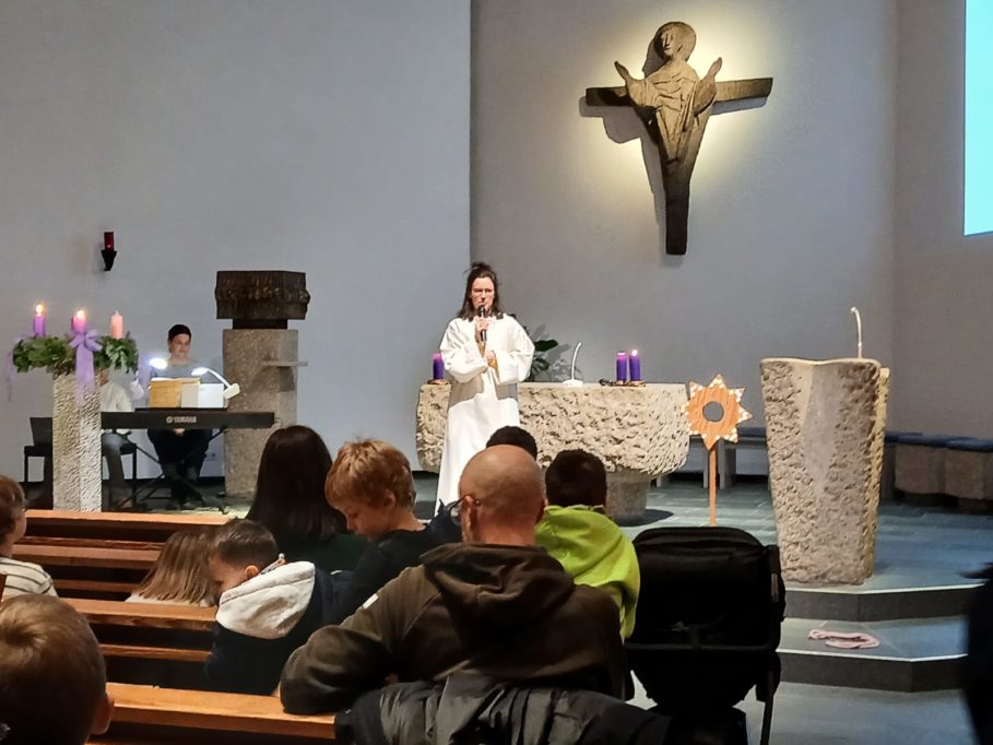 In der Kirche eröffnete Pastoralreferentin Amelie Zimmer den festlichen Teil der Feier. Gemeinsam hörten die Kinder und Familien eine Geschichte rund um den heiligen Bischof. Dazwischen wurden Nikolauslieder gesungen, welche die Kinder mit verschiedenen Rhythmusinstrumenten begleiten durften.