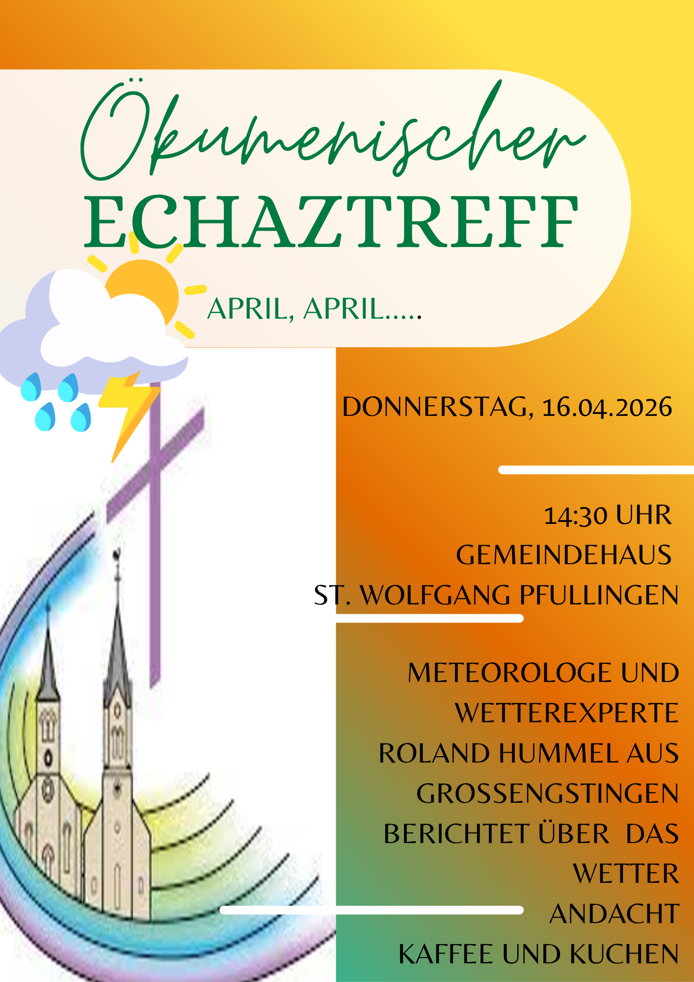 Ökumenischer Echaztreff „April, April…“, Donnerstag, 16.04.2026, Gemeindehaus St. Wolfgang