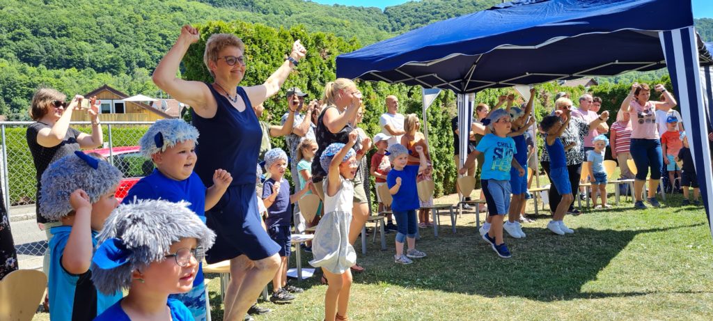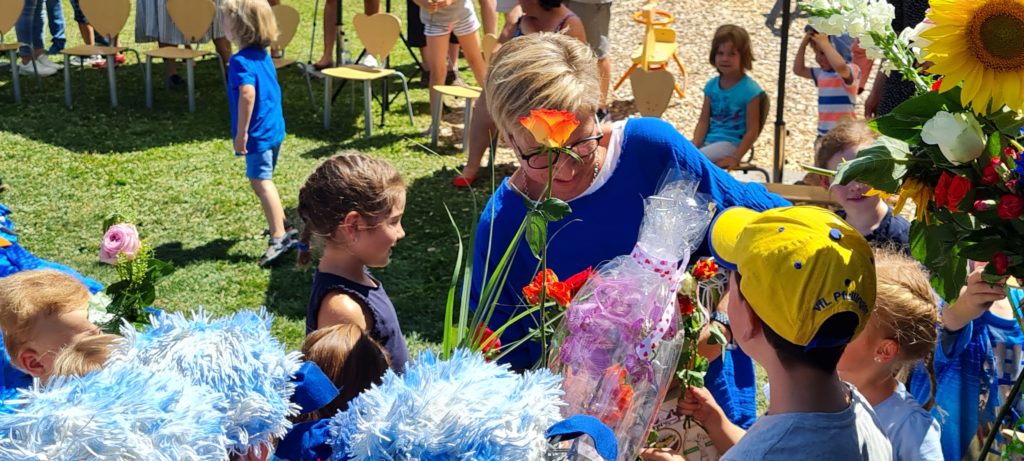 Aufführung des Stückes „Grolltroll“Stellvertretend für die Elternbeirätinnen: Wertschätzung und Dank der scheidenden Leiterin gegenüberZum Abschied ein Blumenmeer von den Kindern und vom Elternbeirat ein Reiseköfferchen „let’s go travel“Spende für Speis und TrankSuche nach EdelsteinenDie GrillmeisterEtwas Süßes zur Abrundung