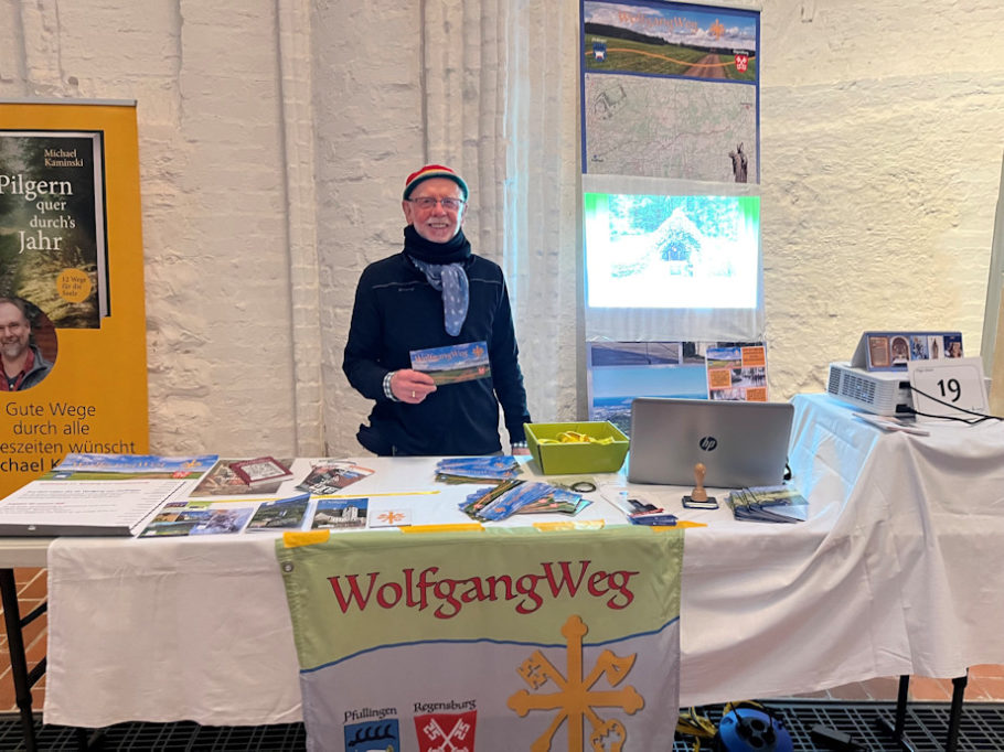 Wolfgang Silver aus unserem Team war mit einem Stand auf der Pilgermesse vertreten und stellte den Fuß- und Radpilgerweg WolfgangWeg vor.